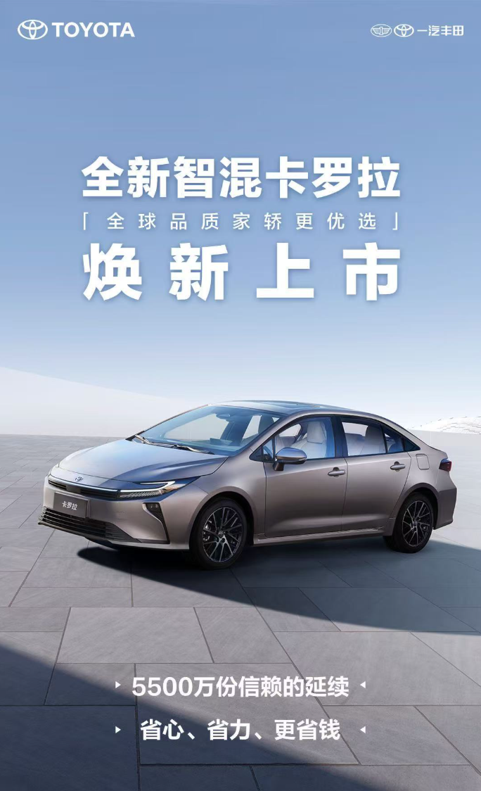 昨日,一汽丰田正式宣布,旗下全新智混卡罗拉正式上市,售价 9.9 万元起。