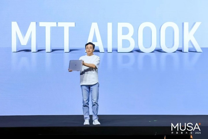 张建中在现场介绍了公司首款 AI 算力本 MTT AIBOOK,售价为 9999 元(32GB+1TB 版本),预计于 2026 年 1 月 10 日开售。